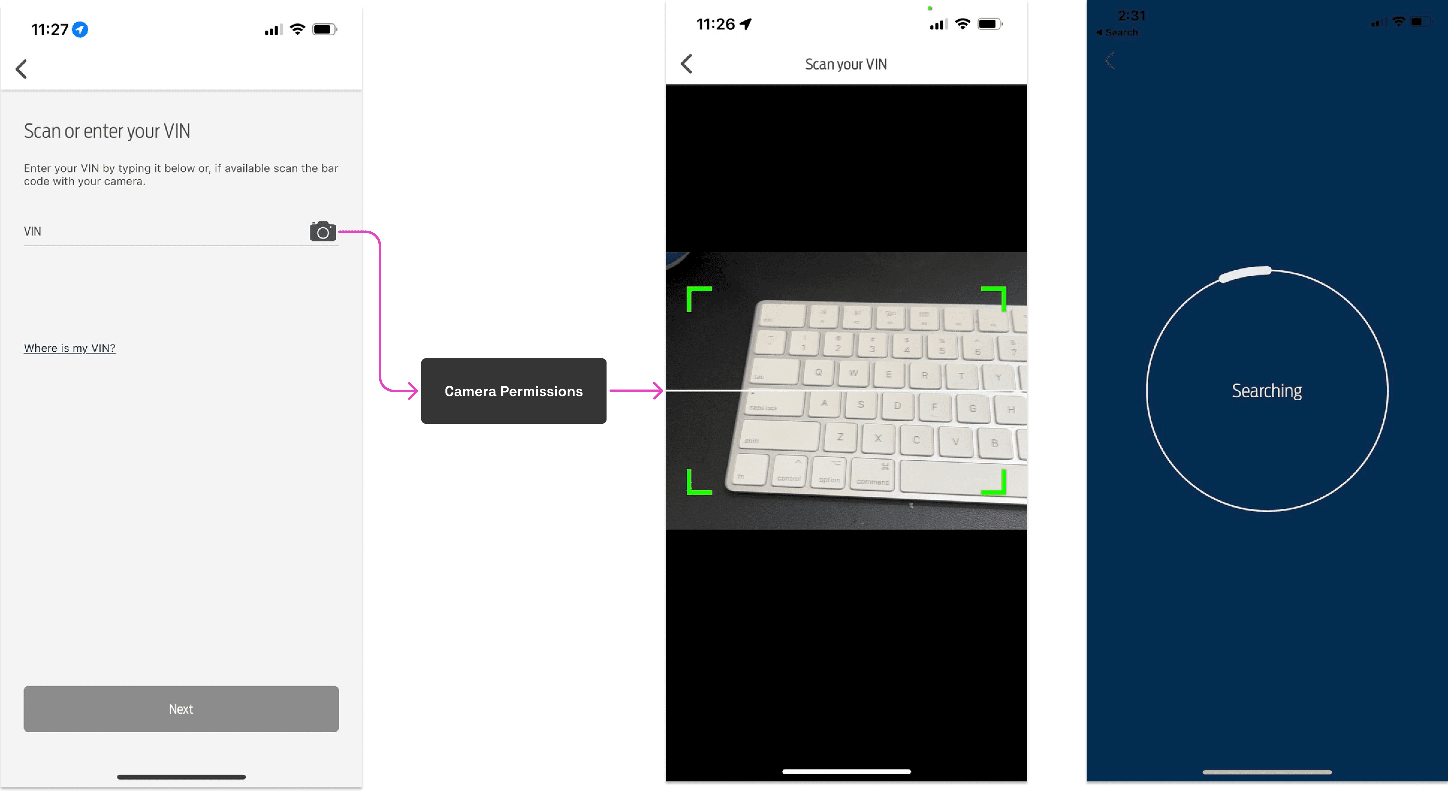 We launched a scanner forward UX flow with supporting enhancements to both the VIN scanner and the manual entry screen