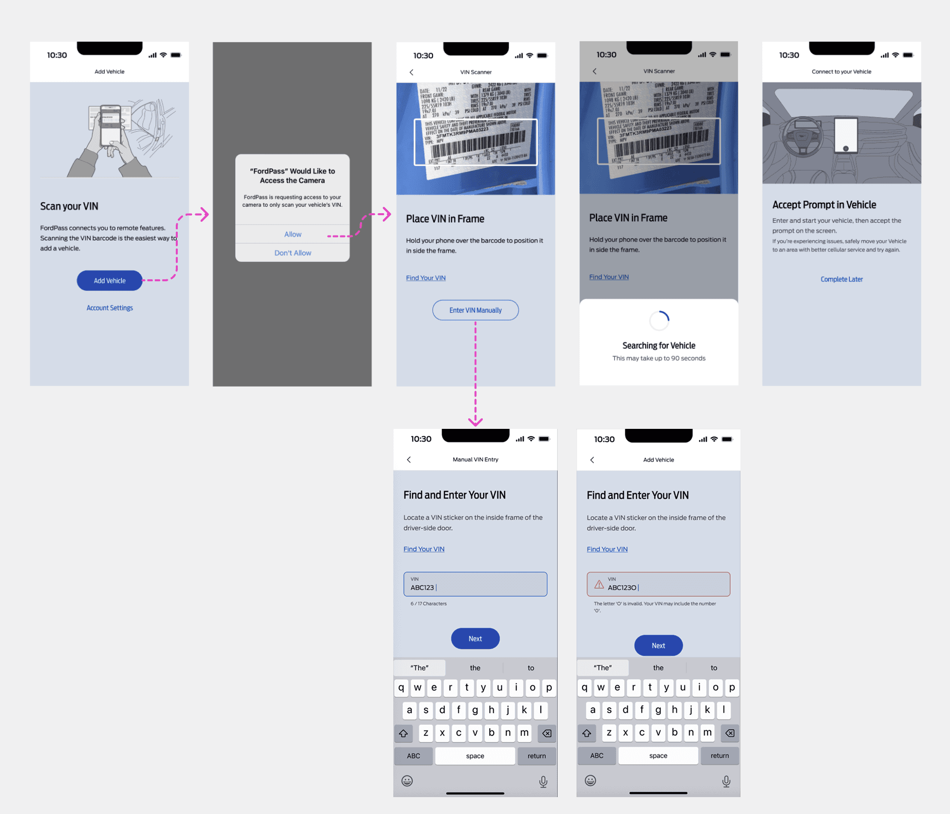 Adding a Vehicle to your Ford Mobile app was optimized for internal testers but not for our customers. The experience focused on manual entry of a 13 digital VIN (Vehicle Identification Number).
